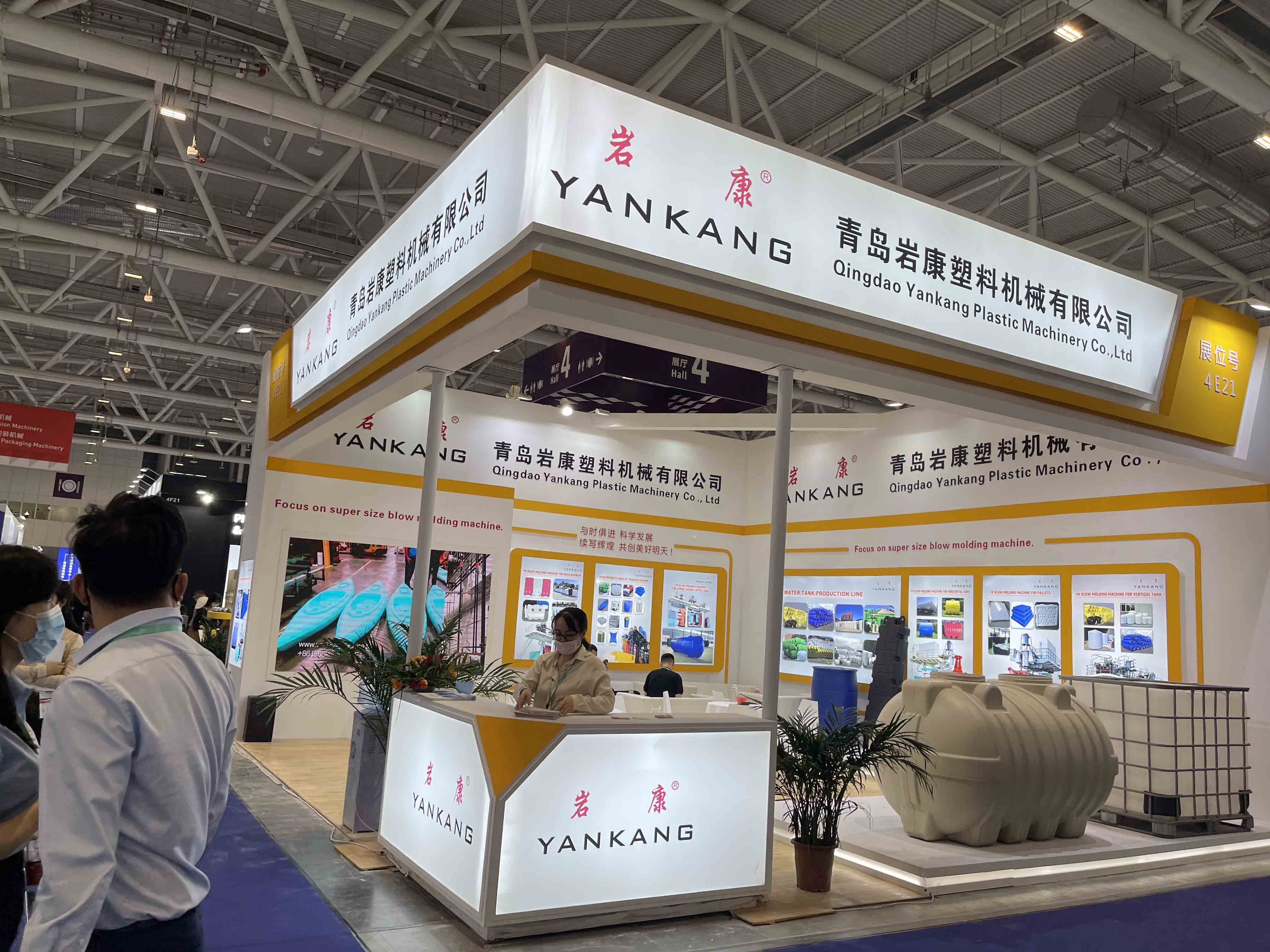 2021年雅士國際橡塑展于2021年4月13 - 16日在深圳國際會展中心舉辦,青島巖康塑機展出YK系列新品吹塑機,其中1臺是20000L大型多層中空吹塑機。